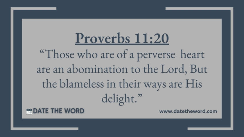 Proverbs 11:20 “Those who are of a perverse heart are an abomination to the Lord, But the blameless in their ways are His delight.”