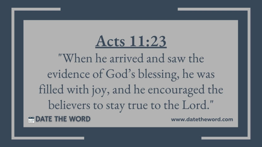 Acts 11:23 "When he arrived and saw the evidence of God’s blessing, he was filled with joy, and he encouraged the believers to stay true to the Lord."