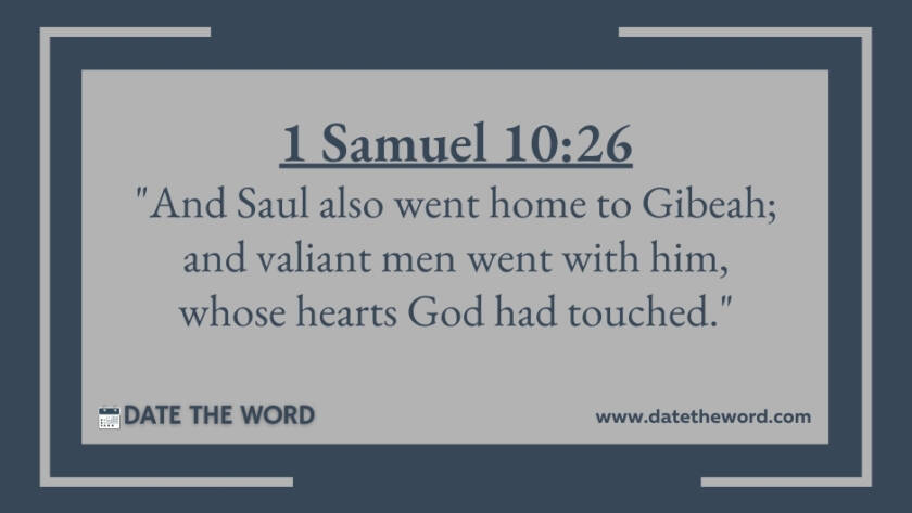1 Samuel 10:26 "And Saul also went home to Gibeah; and valiant men went with him, whose hearts God had touched."