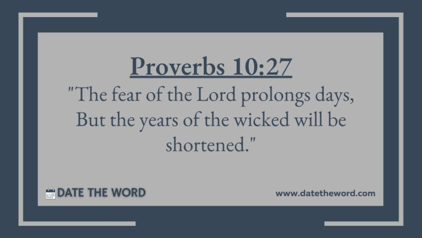 Proverbs 10:27 "The fear of the Lord prolongs days, But the years of the wicked will be shortened."