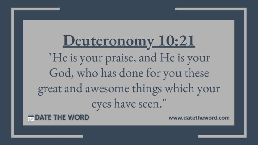 Deuteronomy 10:21 "He is your praise, and He is your God, who has done for you these great and awesome things which your eyes have seen."