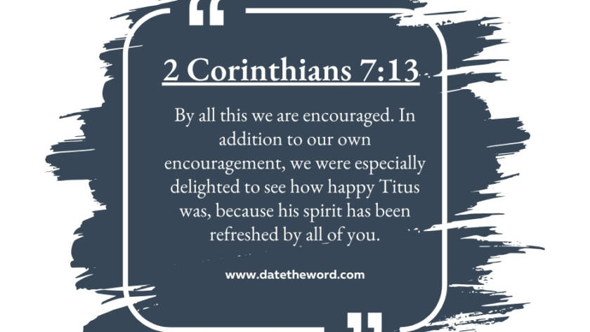 2 Corinthians 7:13 "By all this we are encouraged. In addition to our own encouragement, we were especially delighted to see how happy Titus was, because his spirit has been…
