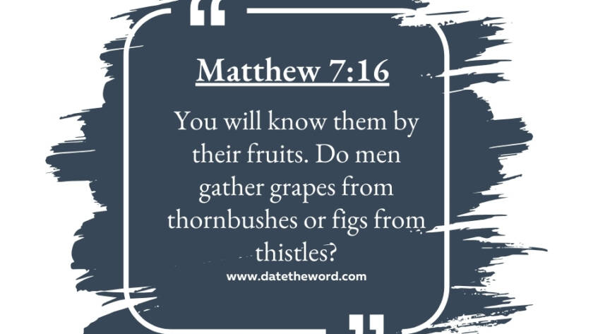 Matthew 7:16 "You will know them by their fruits. Do men gather grapes from thornbushes or figs from thistles?"