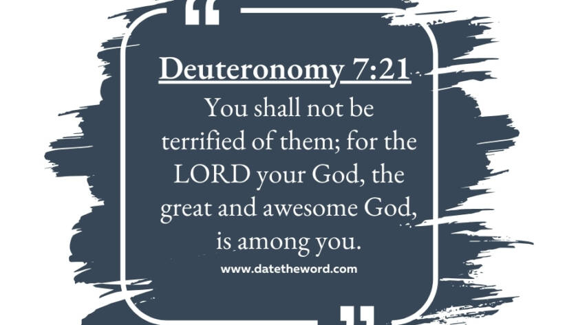 Deuteronomy 7:21 "You shall not be terrified of them; for the LORD your God, the great and awesome God, is among you."