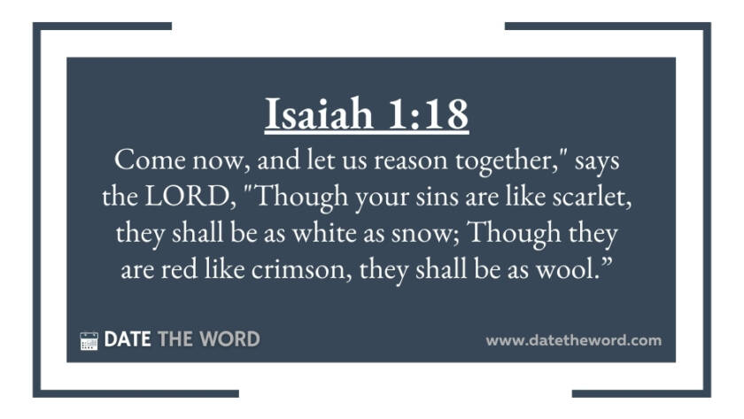 Isaiah 1:18 "Come now, and let us reason together," says the LORD, "Though your sins are like scarlet, they shall be as white as snow; Though they are red like crimson, they…