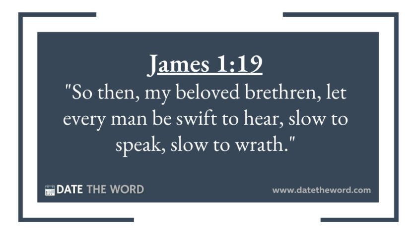 James 1:19 "So then, my beloved brethren, let every man be swift to hear, slow to speak, slow to wrath."