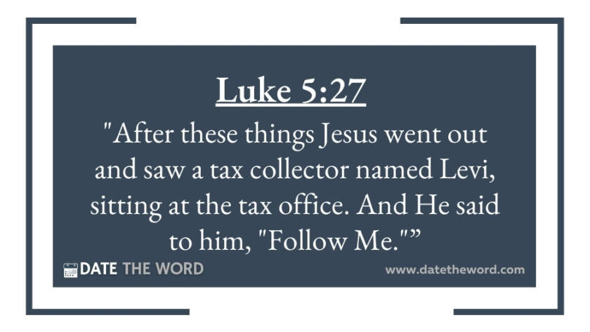 Luke 5:27Â Â "After these things Jesus went out and saw a tax collector named Levi, sitting at the tax office. And He said to him, 'Follow Me.'"