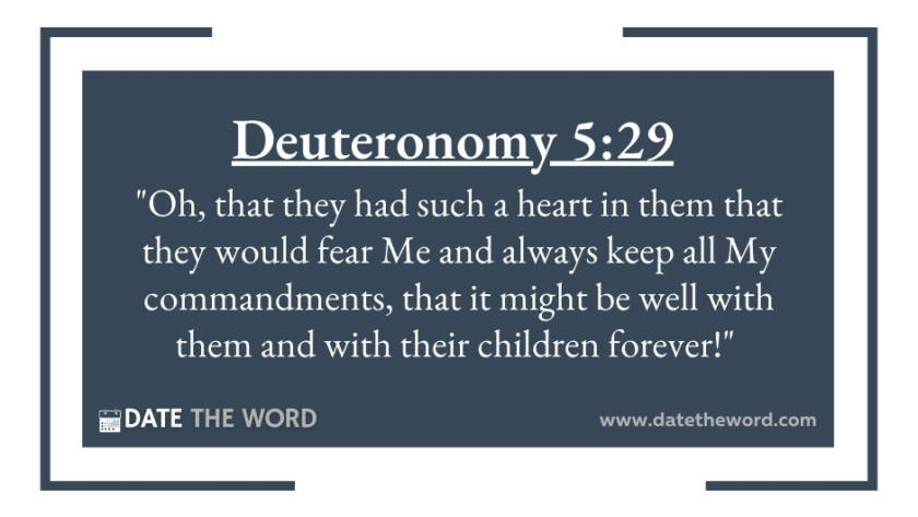 Deuteronomy 5:29 "Oh, that they had such a heart in them that they would fear Me and always keep all My commandments, that it might be well with them and…