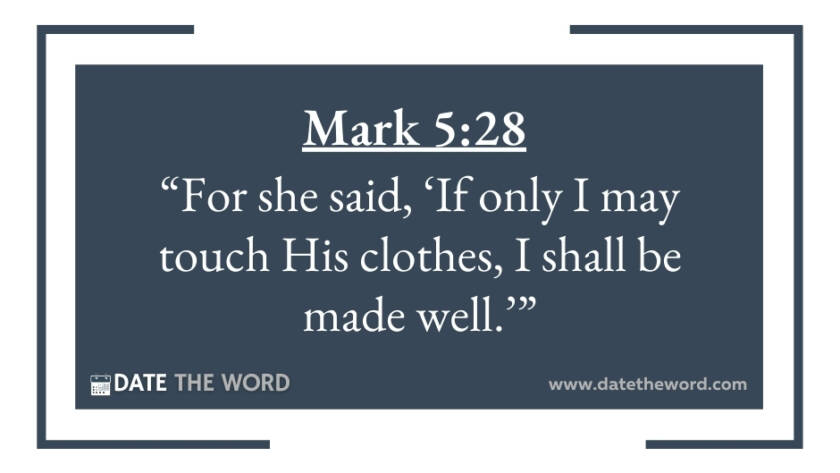 Mark 5:28 "For she said, 'If only I may touch His clothes, I shall be made well.'"