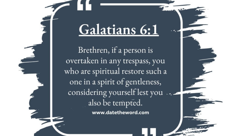 Galatians 6:1 "Brethren, if a person is overtaken in any trespass, you who are spiritual restore such a one in a spirit of gentleness, considering yourself lest you also be…