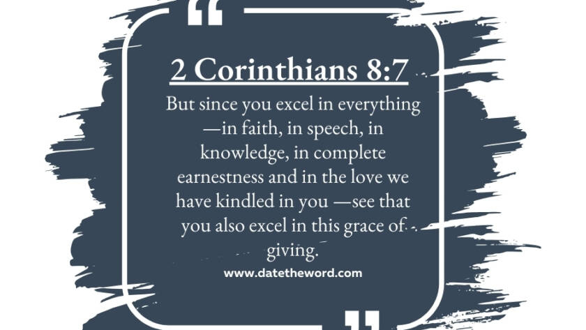 2 Corinthians 8:7 "But since you excel in everything—in faith, in speech, in knowledge, in complete earnestness and in the love we have kindled in you —see that you also…