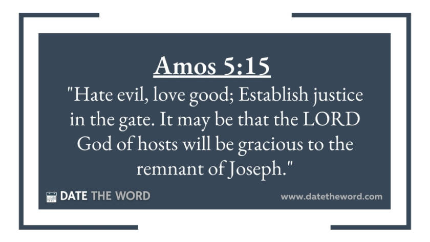 Amos 5:15 "Hate evil, love good; Establish justice in the gate. It may be that the LORD God of hosts will be gracious to the remnant of Joseph."