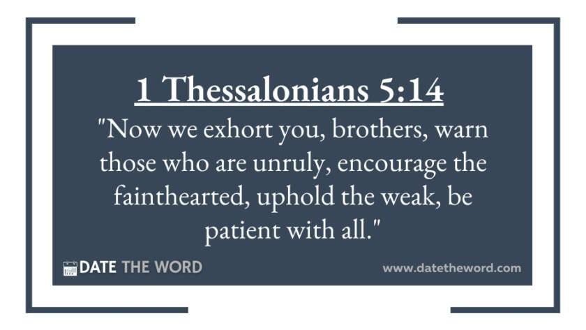 1 Thessalonians 5:14 "Now we exhort you, brothers, warn those who are unruly, encourage the fainthearted, uphold the weak, be patient with all."