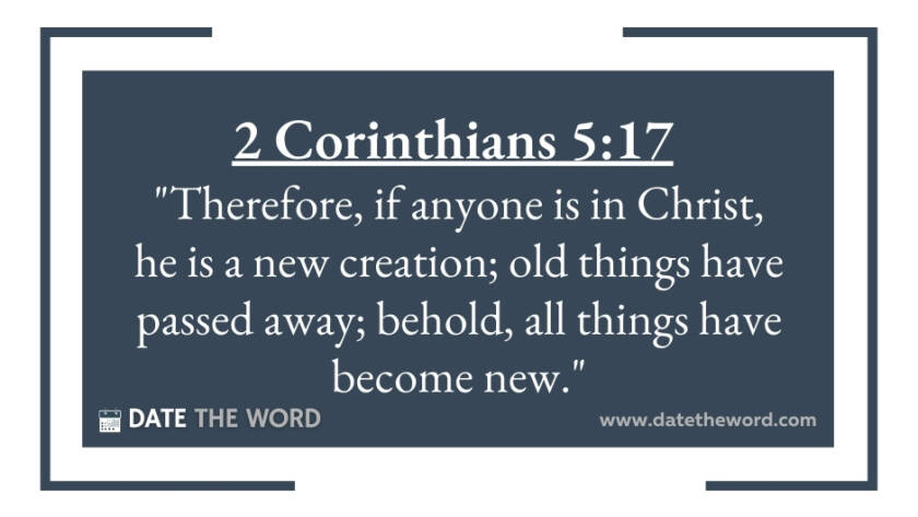 2 Corinthians 5:17 "Therefore, if anyone is in Christ, he is a new creation; old things have passed away; behold, all things have become new."