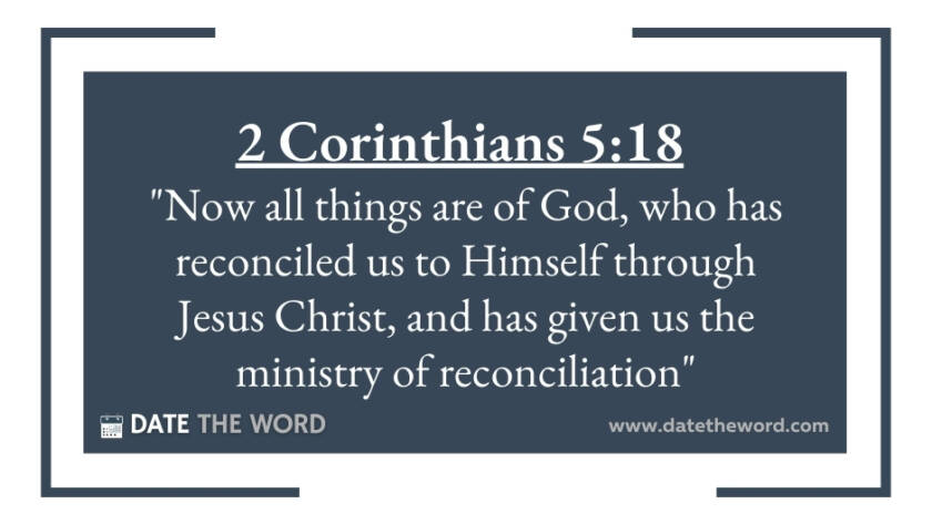 2 Corinthians 5:18 "Now all things are of God, who has reconciled us to Himself through Jesus Christ, and has given us the ministry of reconciliation"