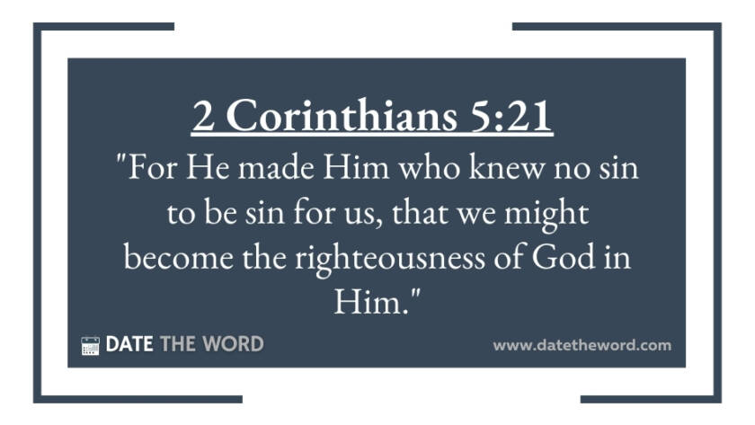 2 Corinthians 5:21 "For He made Him who knew no sin to be sin for us, that we might become the righteousness of God in Him."