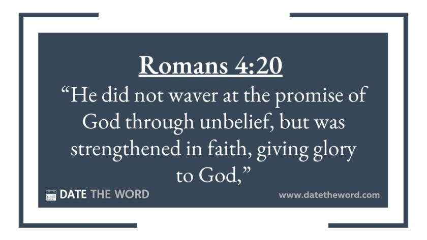 Romans 4:20 “He did not waver at the promise of God through unbelief, but was strengthened in faith, giving glory to God,”