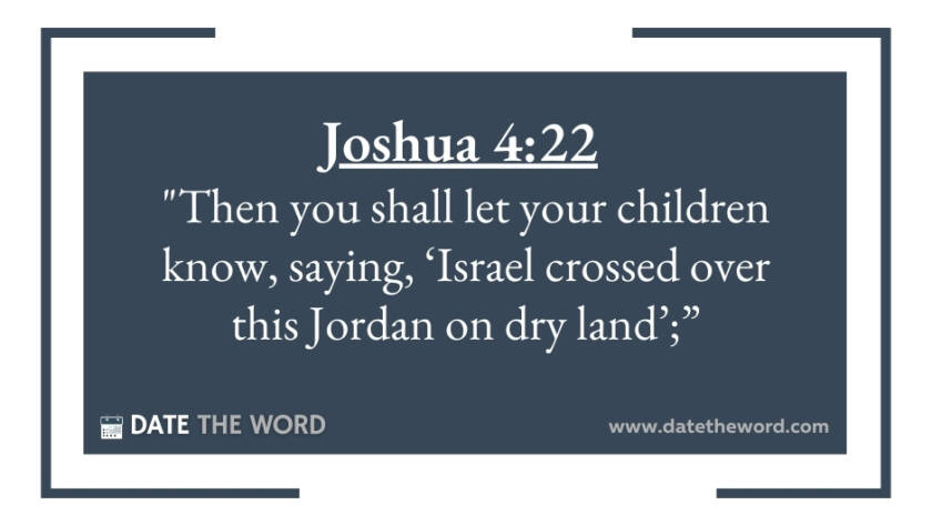 Joshua 4:22 "Then you shall let your children know, saying, ‘Israel crossed over this Jordan on dry land’;"