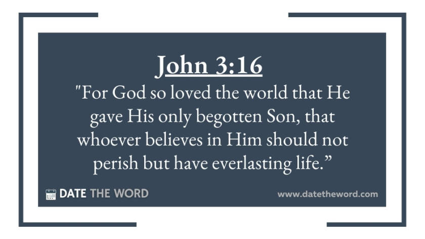 John 3:16 "For God so loved the world that He gave His only begotten Son, that whoever believes in Him should not perish but have everlasting life.”