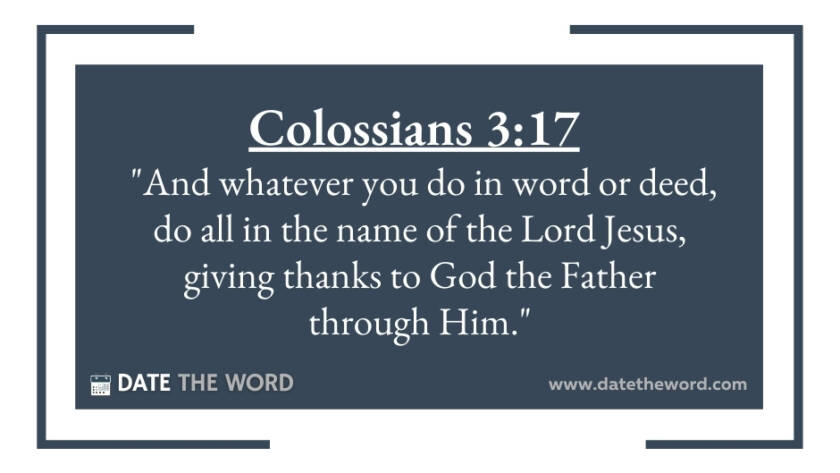 Colossians 3:17 "And whatever you do in word or deed, do all in the name of the Lord Jesus, giving thanks to God the Father through Him."