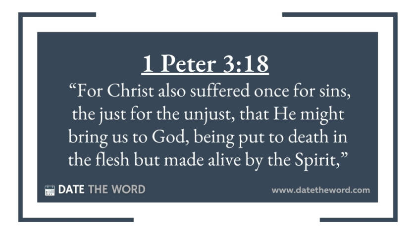 1 Peter 3:18 “For Christ also suffered once for sins, the just for the unjust, that He might bring us to God, being put to death in the flesh but…