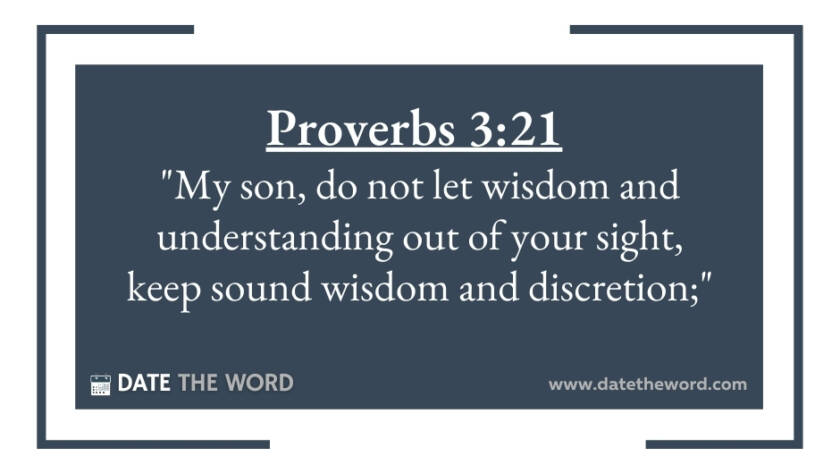 Proverbs 3:21 "My son, do not let wisdom and understanding out of your sight, keep sound wisdom and discretion;"
