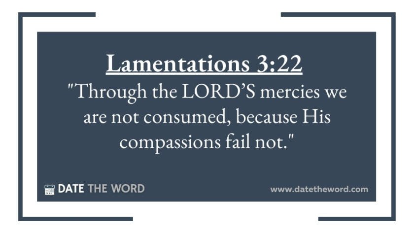 Lamentations 3:22 "Through the LORD’S mercies we are not consumed, because His compassions fail not."
