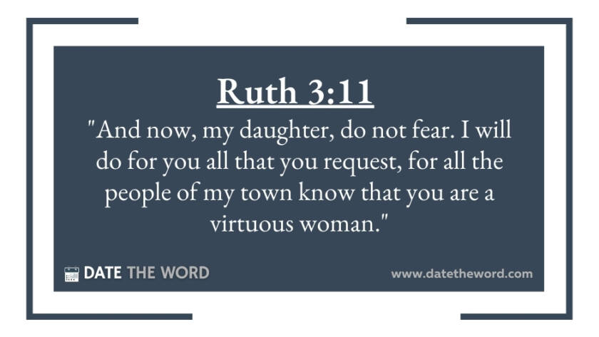 Ruth 3:11 "And now, my daughter, do not fear. I will do for you all that you request, for all the people of my town know that you are a…