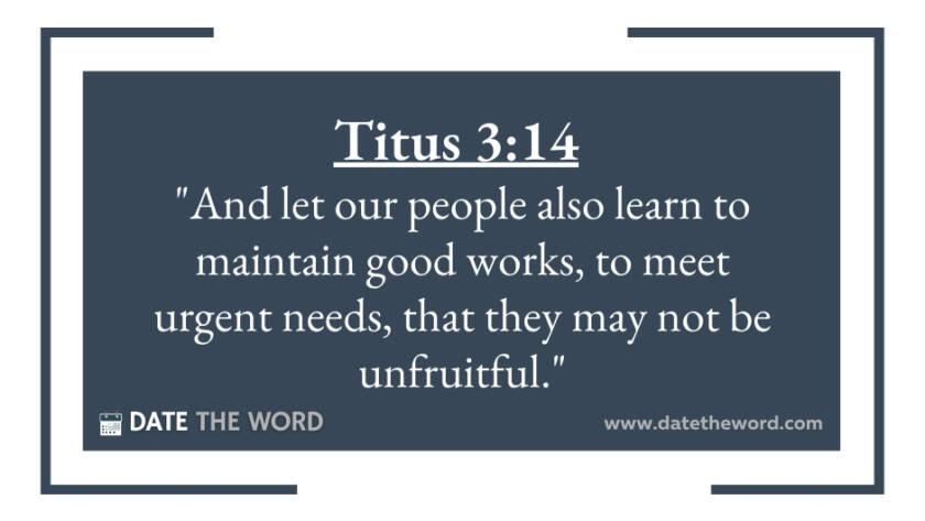 Titus 3:14 "And let our people also learn to maintain good works, to meet urgent needs, that they may not be unfruitful."