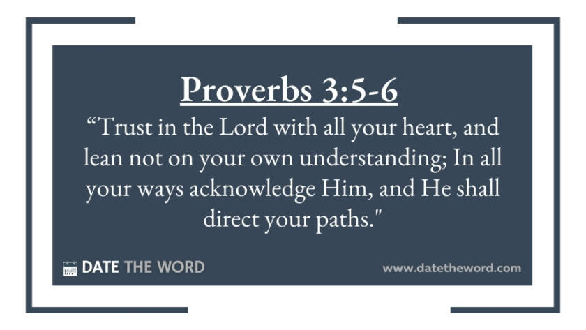 Proverbs 3:5-6 “Trust in the Lord with all your heart, and lean not on your own understanding; In all your ways acknowledge Him, and He shall direct your paths."