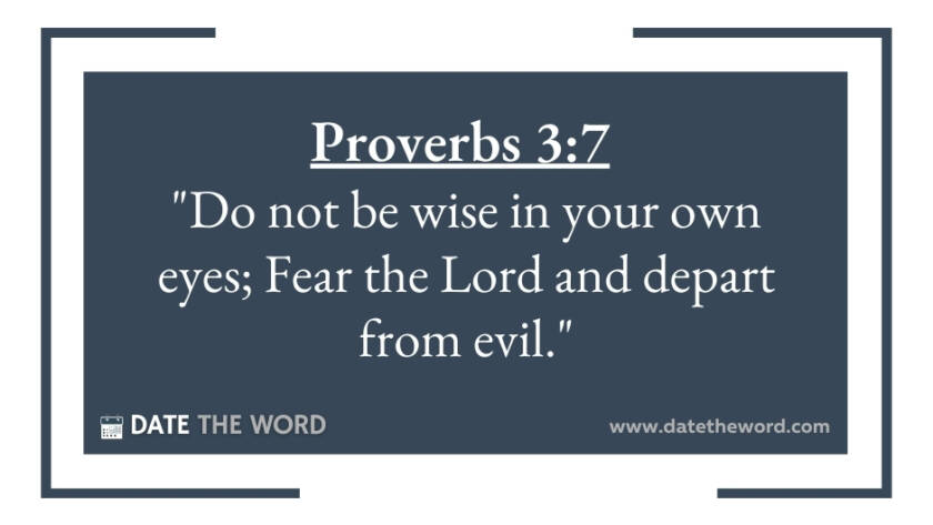 Proverbs 3:7 "Do not be wise in your own eyes; Fear the Lord and depart from evil."