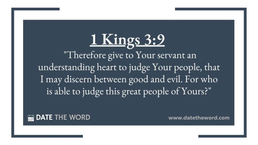 1 Kings 3:9 "Therefore give to Your servant an understanding heart to judge Your people, that I may discern between good and evil. For who is able to judge this…