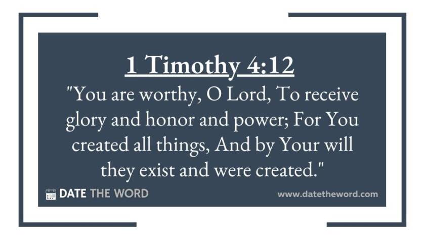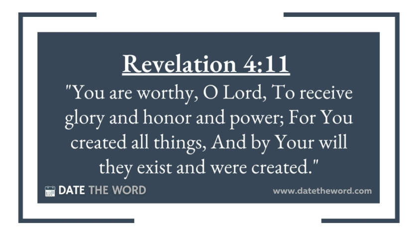 Revelations 4:11 "You are worthy, O Lord, To receive glory and honor and power; For You created all things, And by Your will they exist and were created."