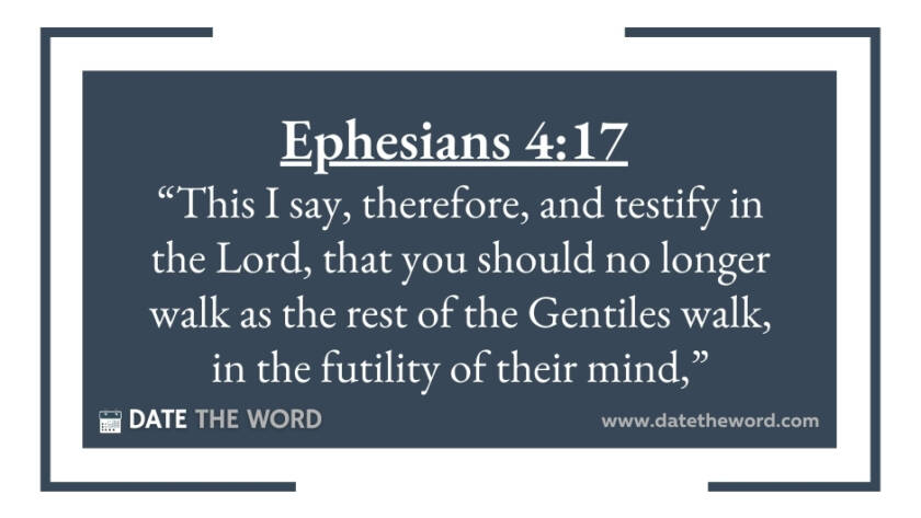 Ephesians 4:17 “This I say, therefore, and testify in the Lord, that you should no longer walk as the rest of the Gentiles walk, in the futility of their mind,”