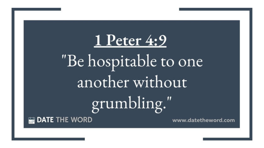 1 Peter 4:9 "Be hospitable to one another without grumbling."