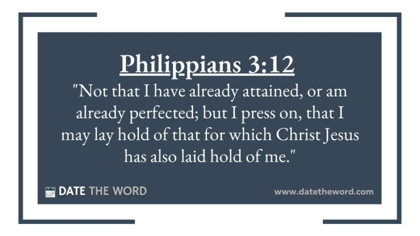 Philippians 3:12 "Not that I have already attained, or am already perfected; but I press on, that I may lay hold of that for which Christ Jesus has also laid…