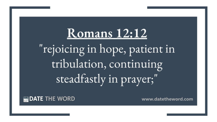Romans 12:12 "rejoicing in hope, patient in tribulation, continuing steadfastly in prayer;"