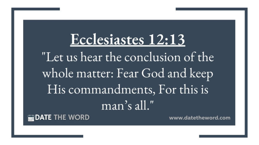 Ecclesiastes 12:13 "Let us hear the conclusion of the whole matter: Fear God and keep His commandments, For this is man’s all."