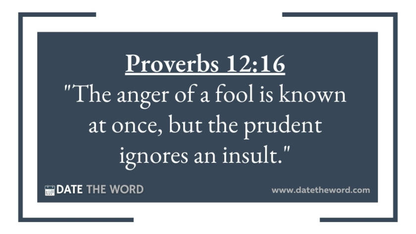 Proverbs 12:16 "The anger of a fool is known at once, but the prudent ignores an insult."