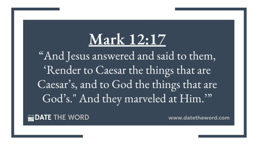 Mark 12:17 “And Jesus answered and said to them, ‘Render to Caesar the things that are Caesar’s, and to God the things that are God’s." And they marveled at Him.’”…