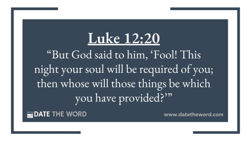 Luke 12:20 “But God said to him, ‘Fool! This night your soul will be required of you; then whose will those things be which you have provided?’”