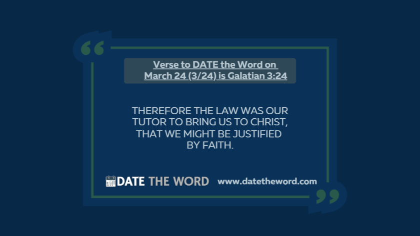 Our verse to DATE the Word on March 24 (3/24) is Galatians 3:24Galatians 3:24 Therefore the law was our tutor to bring us to Christ, that we might be justified by…