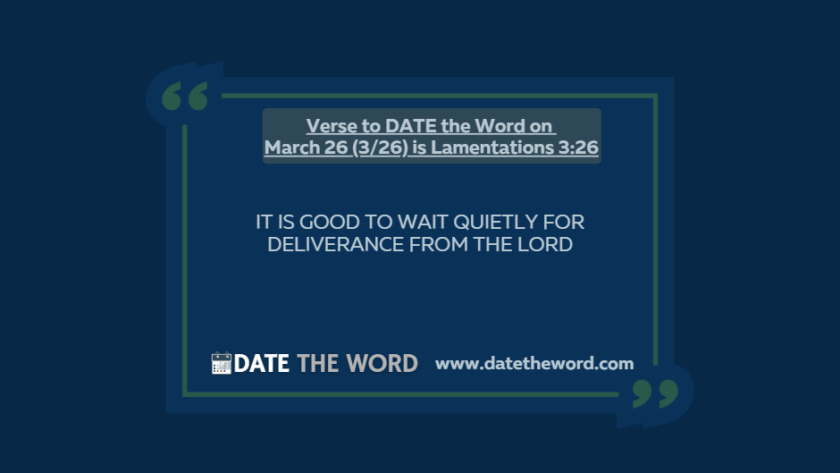 Our verse to DATE the Word on March 26 (3/26) is Lamentations 3:26Lamentations 3:26 says, "It is good to wait quietly for deliverance from the LORD."