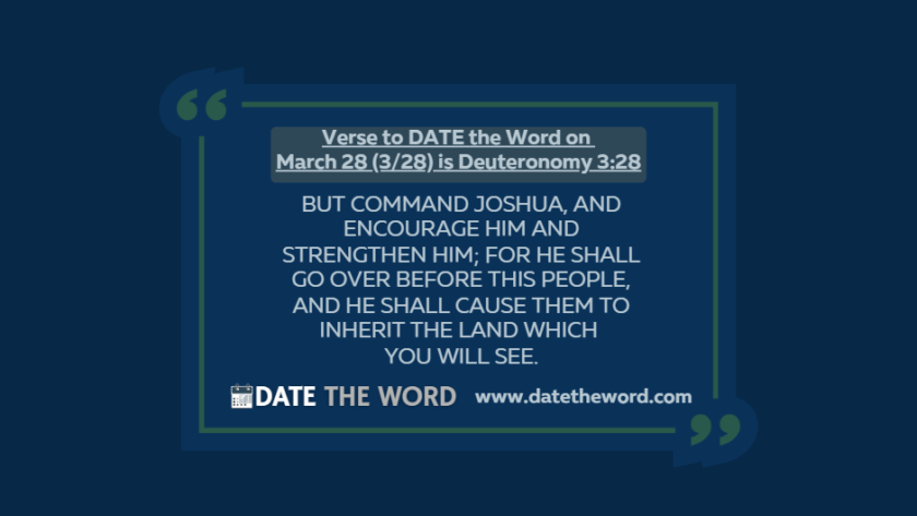 Our verse to DATE the Word on March 28 (3/28) is Deuteronomy 3:28Deuteronomy 3:28 says, "But command Joshua, and encourage him and strengthen him; for he shall go over before this people, and he…