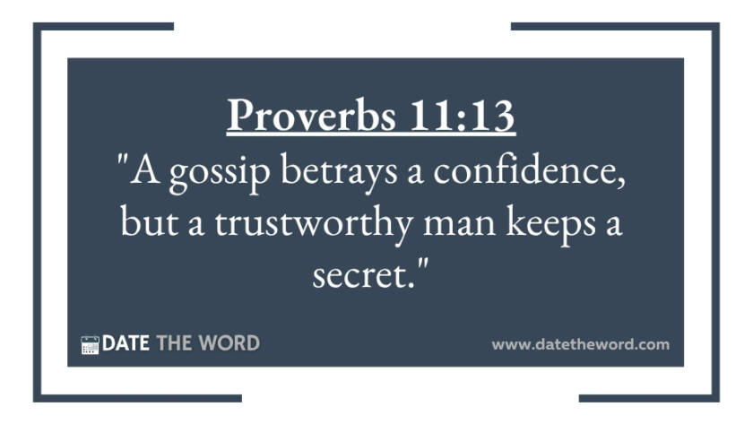 Proverbs 11:13 "A gossip betrays a confidence, but a trustworthy man keeps a secret."