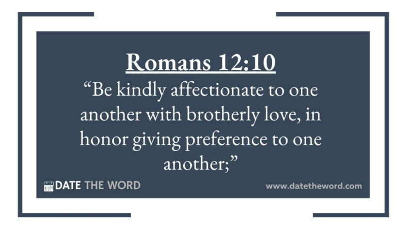 Romans 12:10 “Be kindly affectionate to one another with brotherly love, in honor giving preference to one another;”