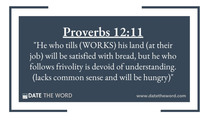 Proverbs 12:11 "He who tills (WORKS) his land (at their job) will be satisfied with bread, but he who follows frivolity is devoid of understanding. (lacks common sense and will…