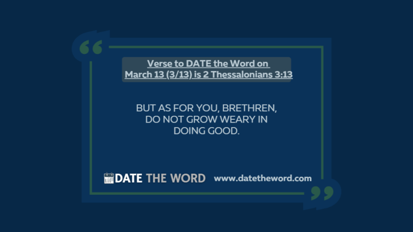 Our verse to DATE the Word on March 13 (3/13) is 2 Thessalonians 3:132 Thessalonians 3:13 says, “But as for you, brethren, do not grow weary in doing good.” …