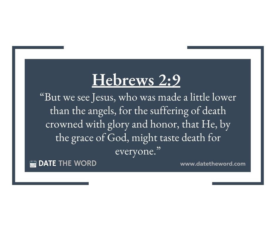Hebrews 2:9 “But we see Jesus, who was made a little lower than the angels, for the suffering of death crowned with glory and honor, that He, by the grace of God, might taste death for everyone.”