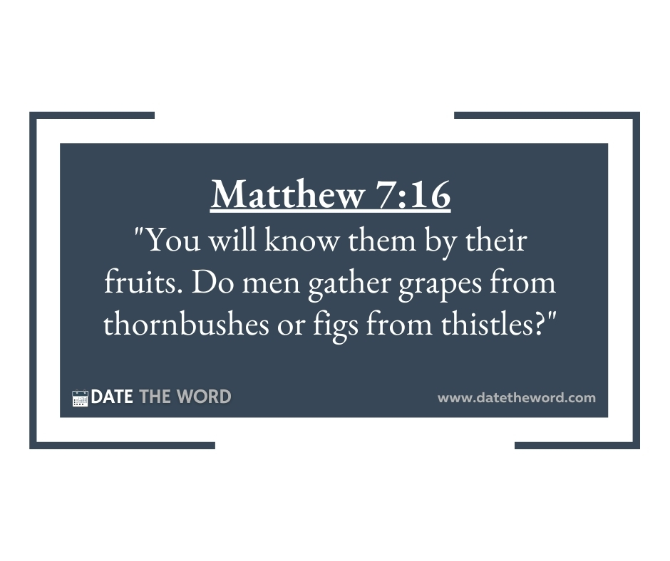 Matthew 7:16 “You will know them by their fruits. Do men gather grapes from thornbushes or figs from thistles?”